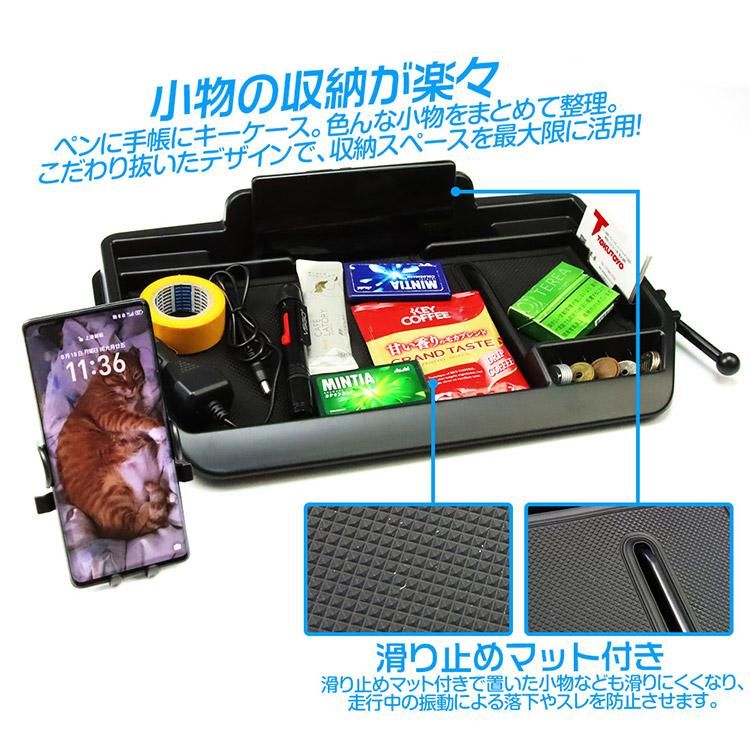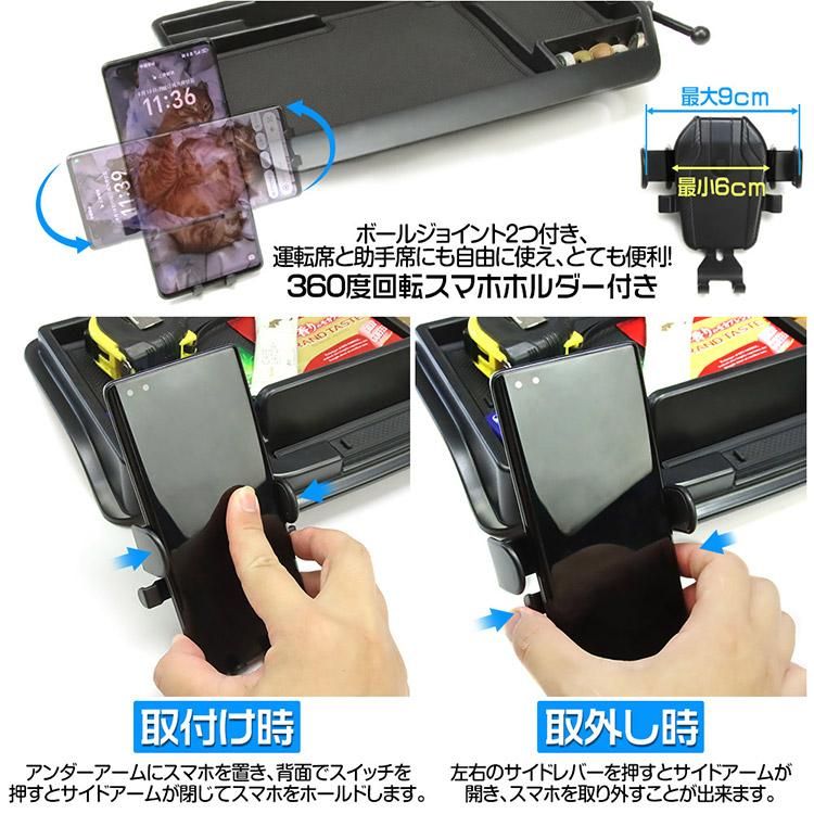 ■携帯ホルダー、ティッシュ、財布、携帯電話、鍵、小さな手帳などの小物等を収納できるスペースが設けた上、スマホステーを1個新しく増設し、お客様は好みに合わせて運転席側にも助手席にも使用頂けます。