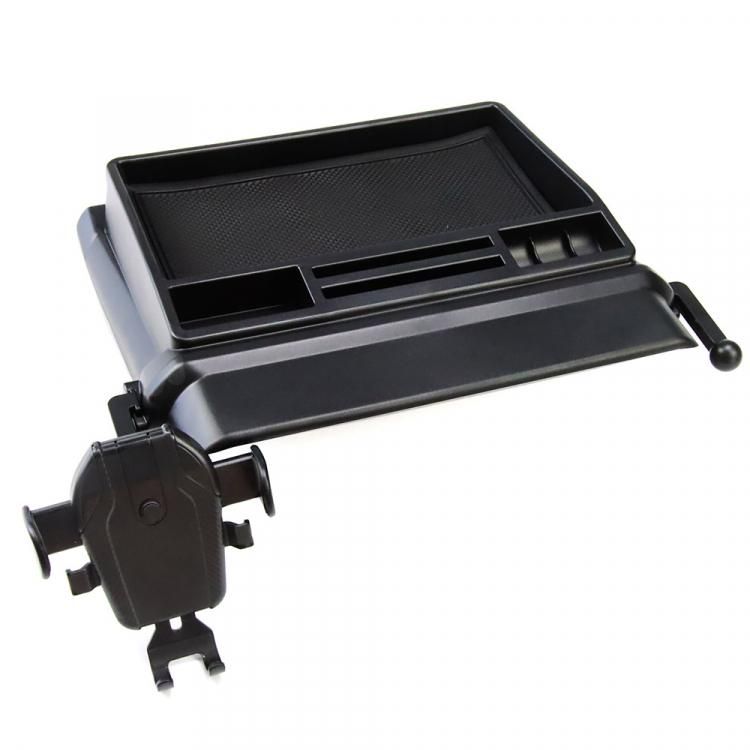 ■携帯ホルダー、ティッシュ、財布、携帯電話、鍵、小さな手帳などの小物等を収納できるスペースが設けた上、スマホステーを1個新しく増設し、お客様は好みに合わせて運転席側にも助手席にも使用頂けます。