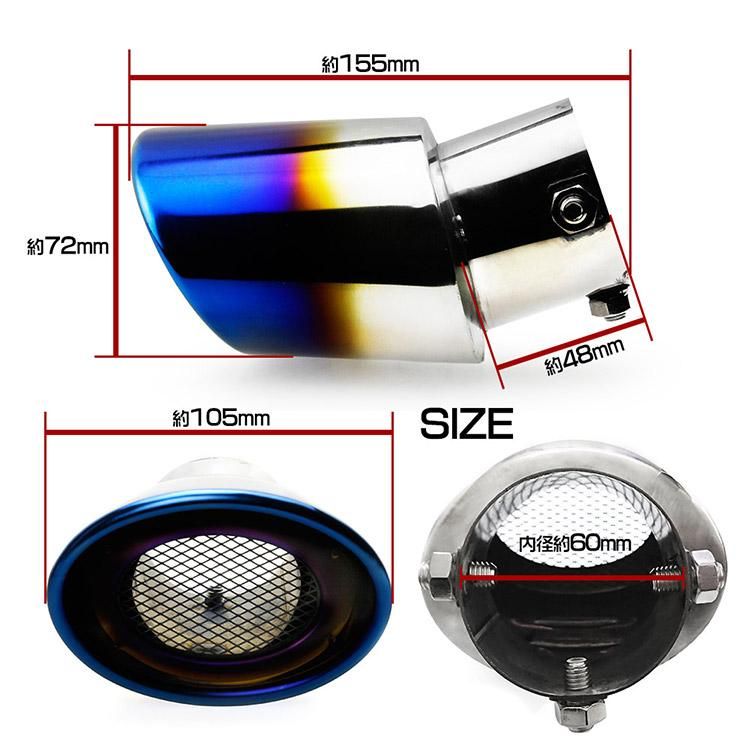 「脱落防止ワイヤー付」マツダ スクラムワゴン DG64W スラッシュ 外装 マフラーカッター チタン焼き 下向き ボルト付 約40mm~56mm適用
